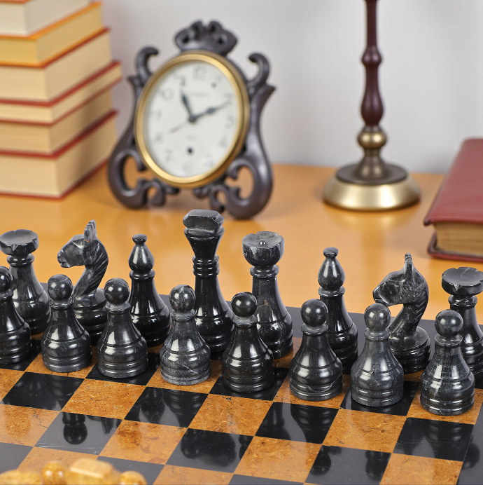 Marble Hives Luxury Handmade Marble Chess Set – Black and Golden