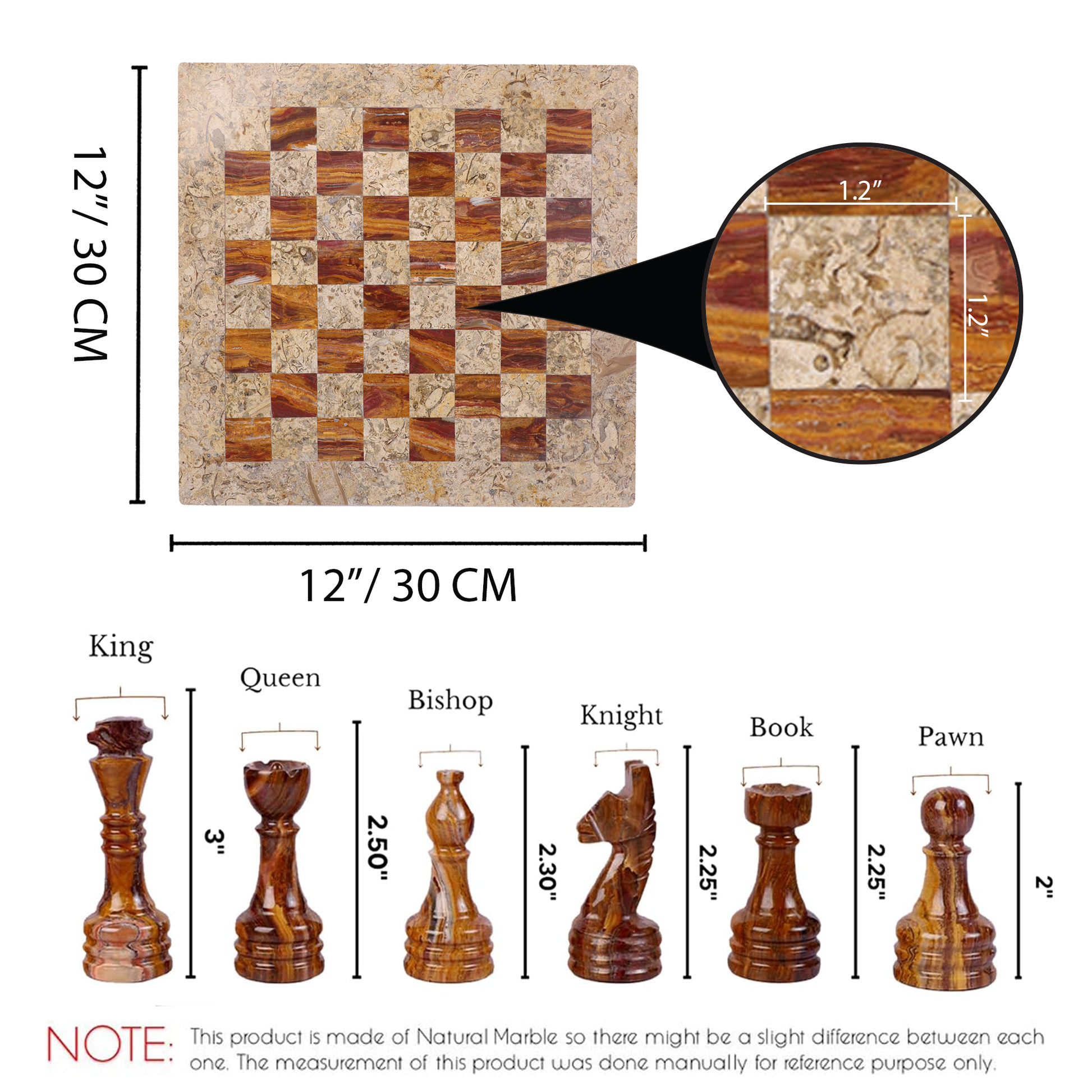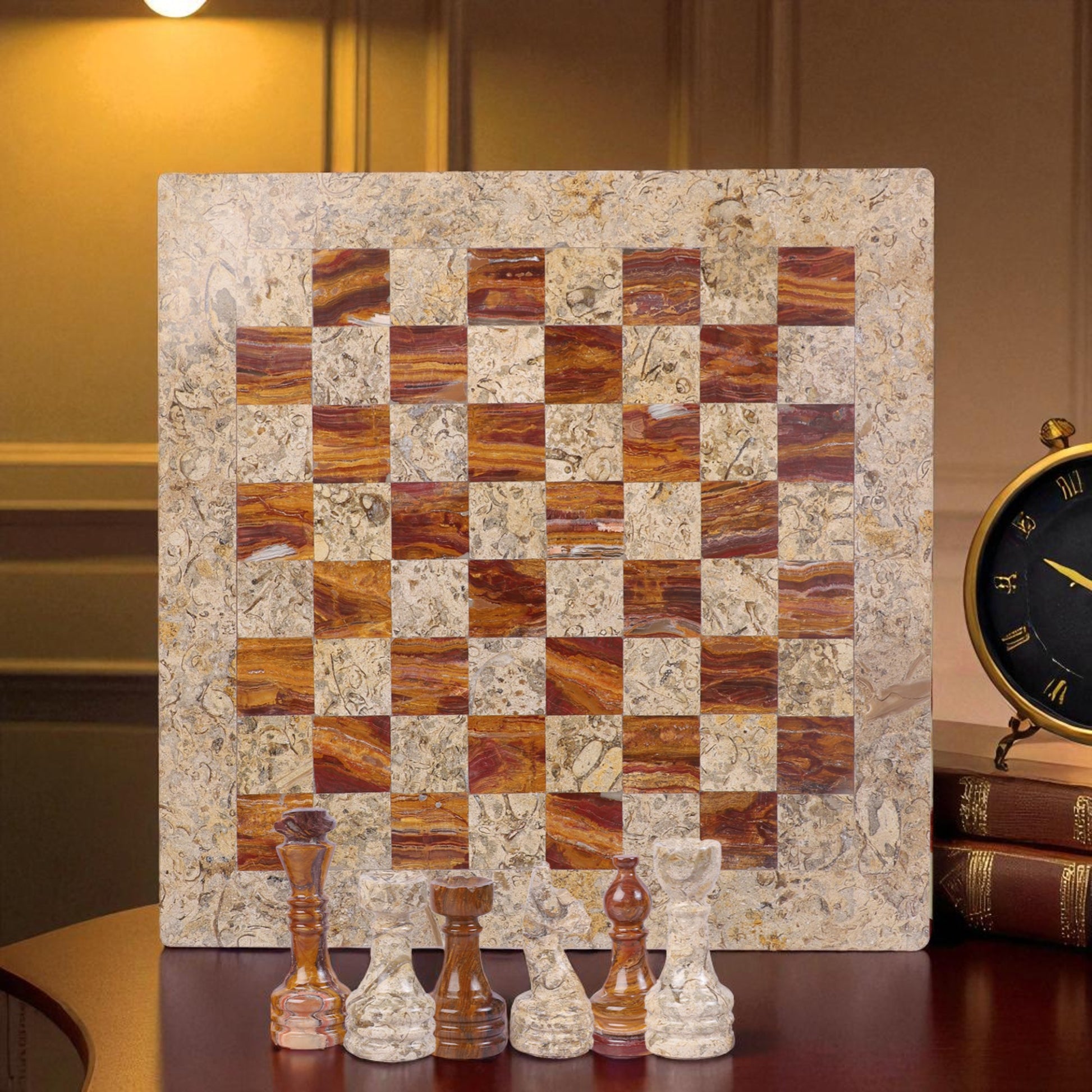 Marble HIves Luxury Handmade Marble Chess Set - Brown and Coral -12 Inch