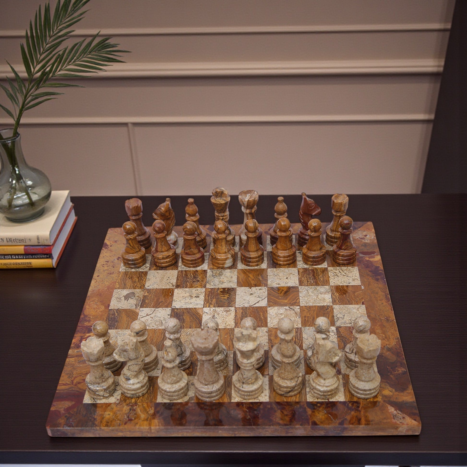 Unique & Durable: Natural marble veining ensures every chess piece is one-of-a-kind and built to last.