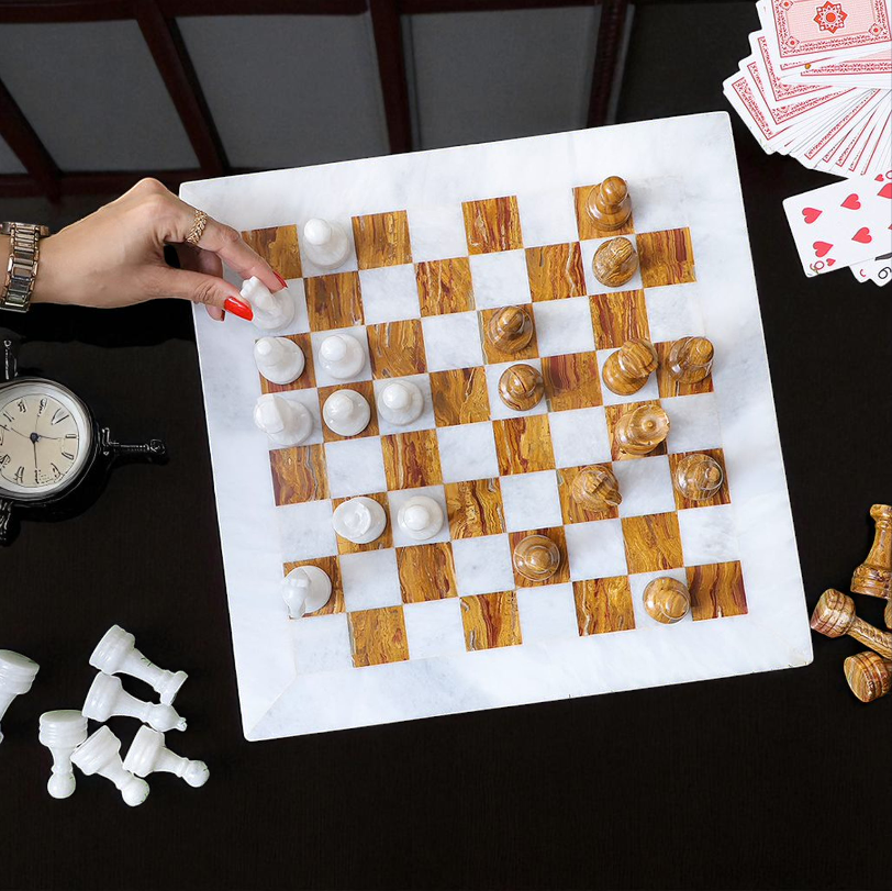 Marble Hives Luxury Handmade Marble Chess Set – White and Dark Brown