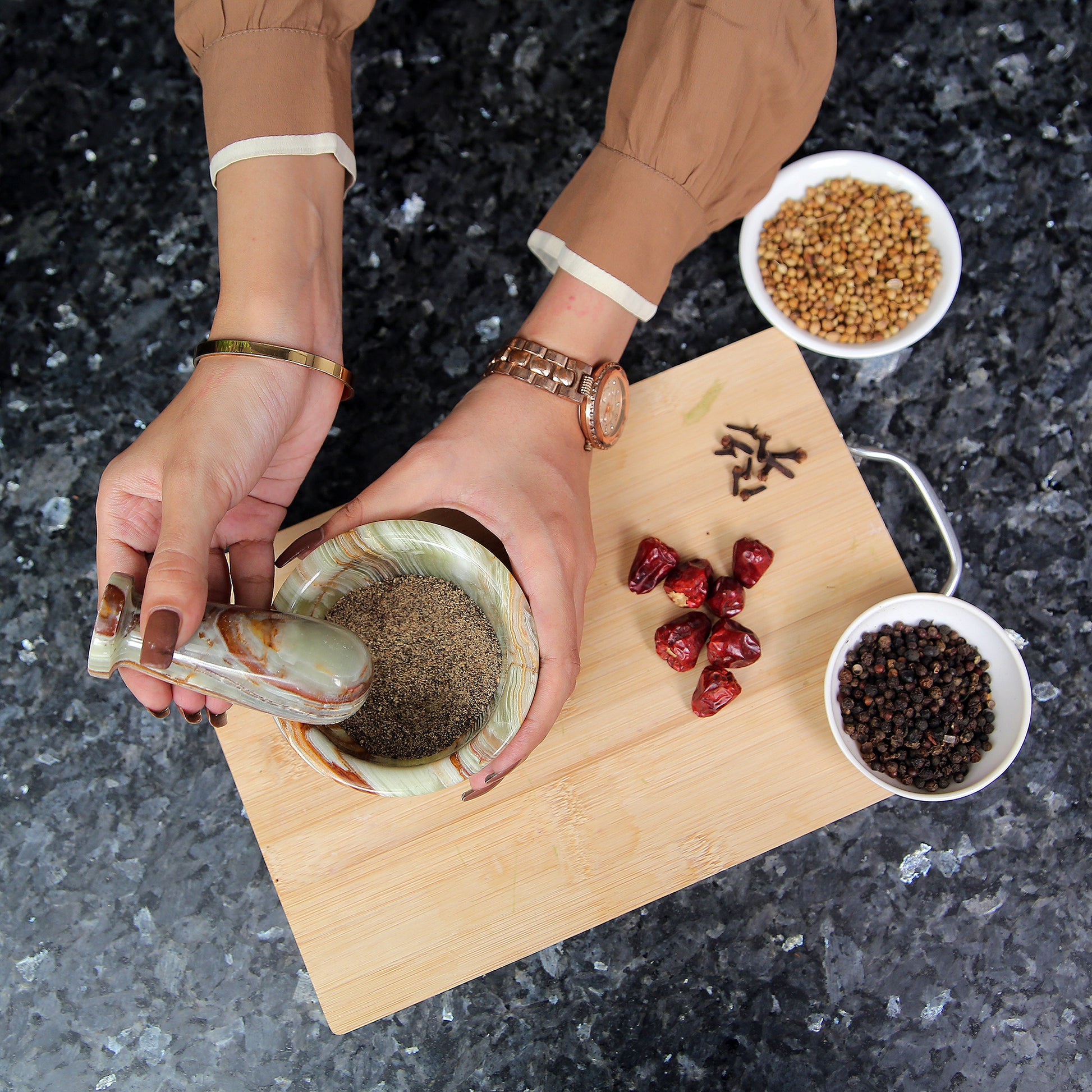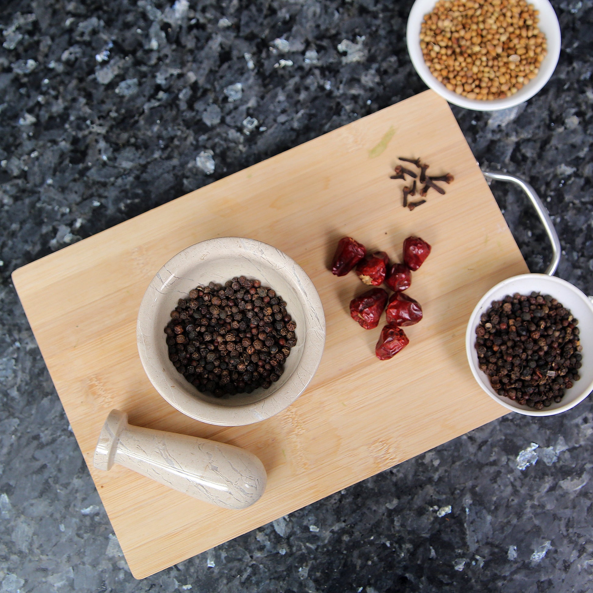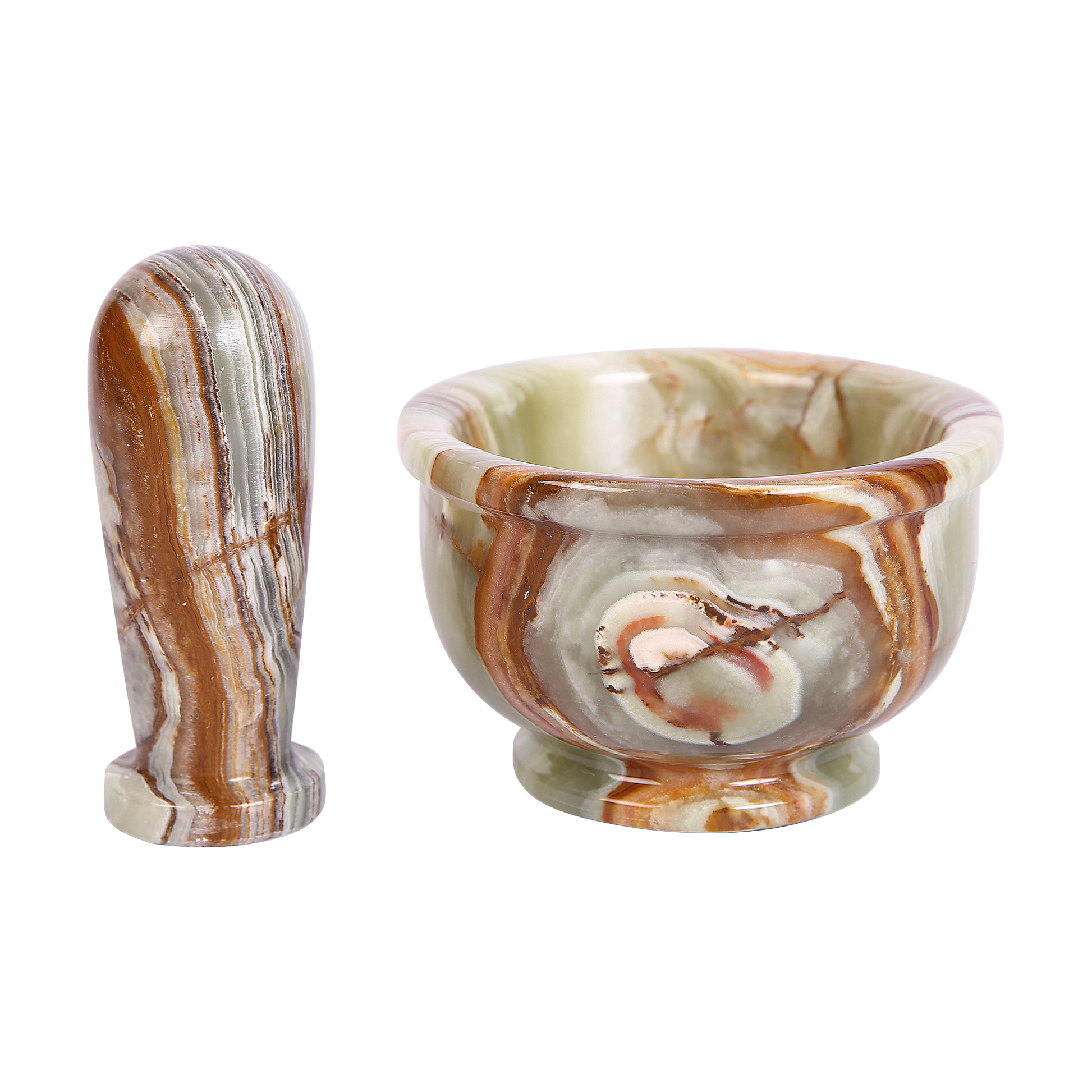 Our handmade pestle and mortar is an ideal gift for people who enjoy cooking. Unique to every set, no two pieces bear an identical look of veining and coloring patterns, making it a unique kitchen tool that will look perfect with your kitchenware.