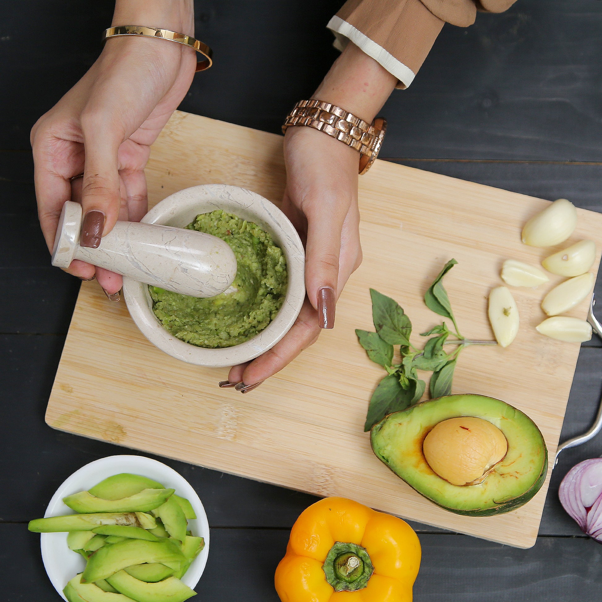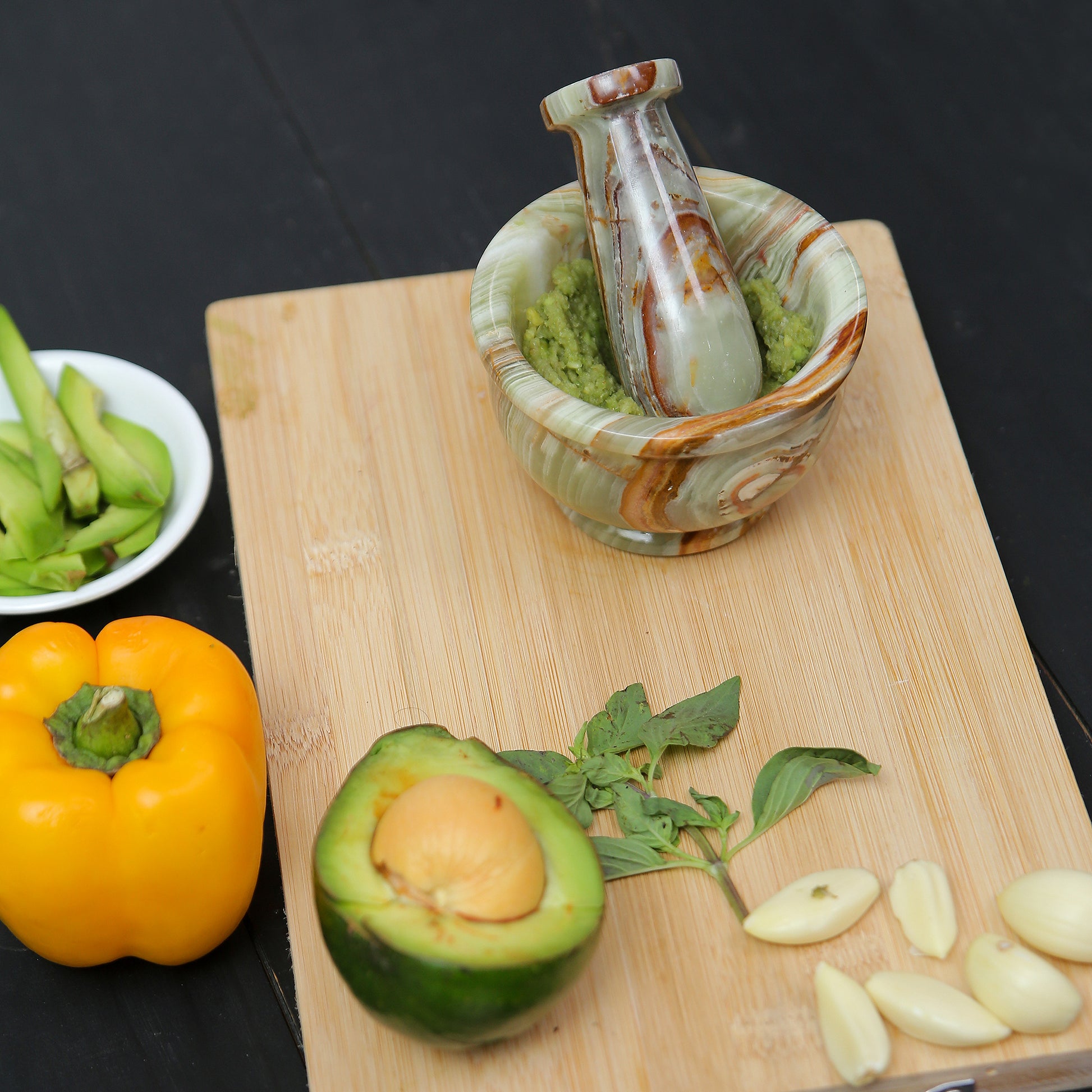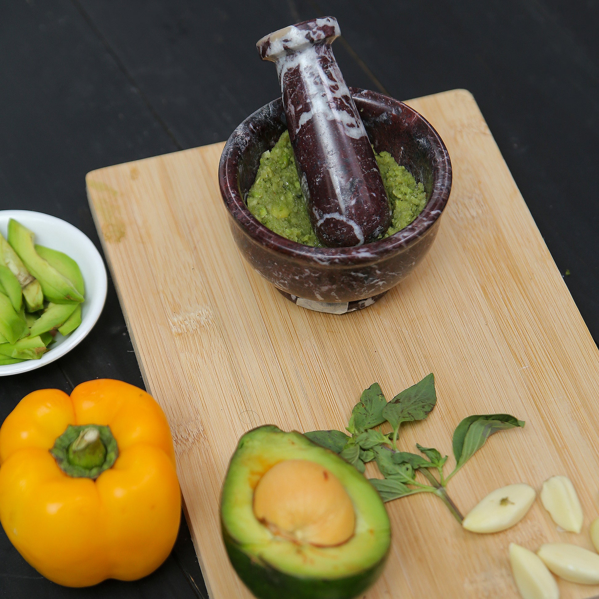 This necessary kitchen tool is ideal for extracting full flavours from spices, herbs, garlic, and nuts, Making Guacamole, Salsa, Pesto, and Crushing Pills, enriching your recipe with fresh, intense aroma. It is also helpful in drawing out the oil from flower petals, seeds, and peels with uttermost ease, providing a natural flavor to your dishes.