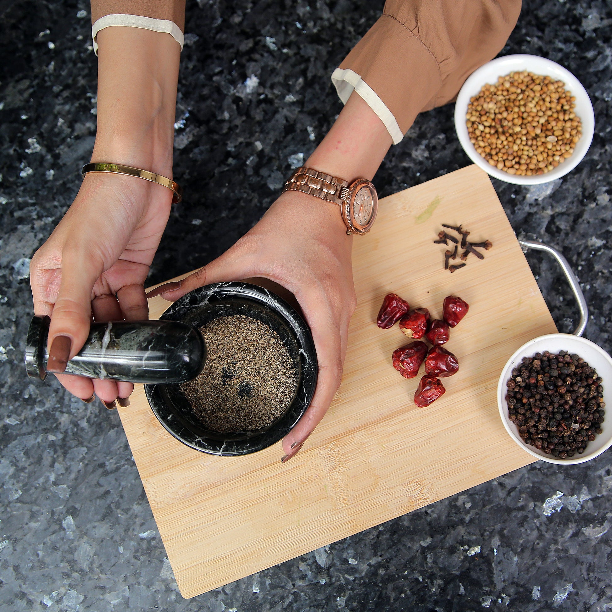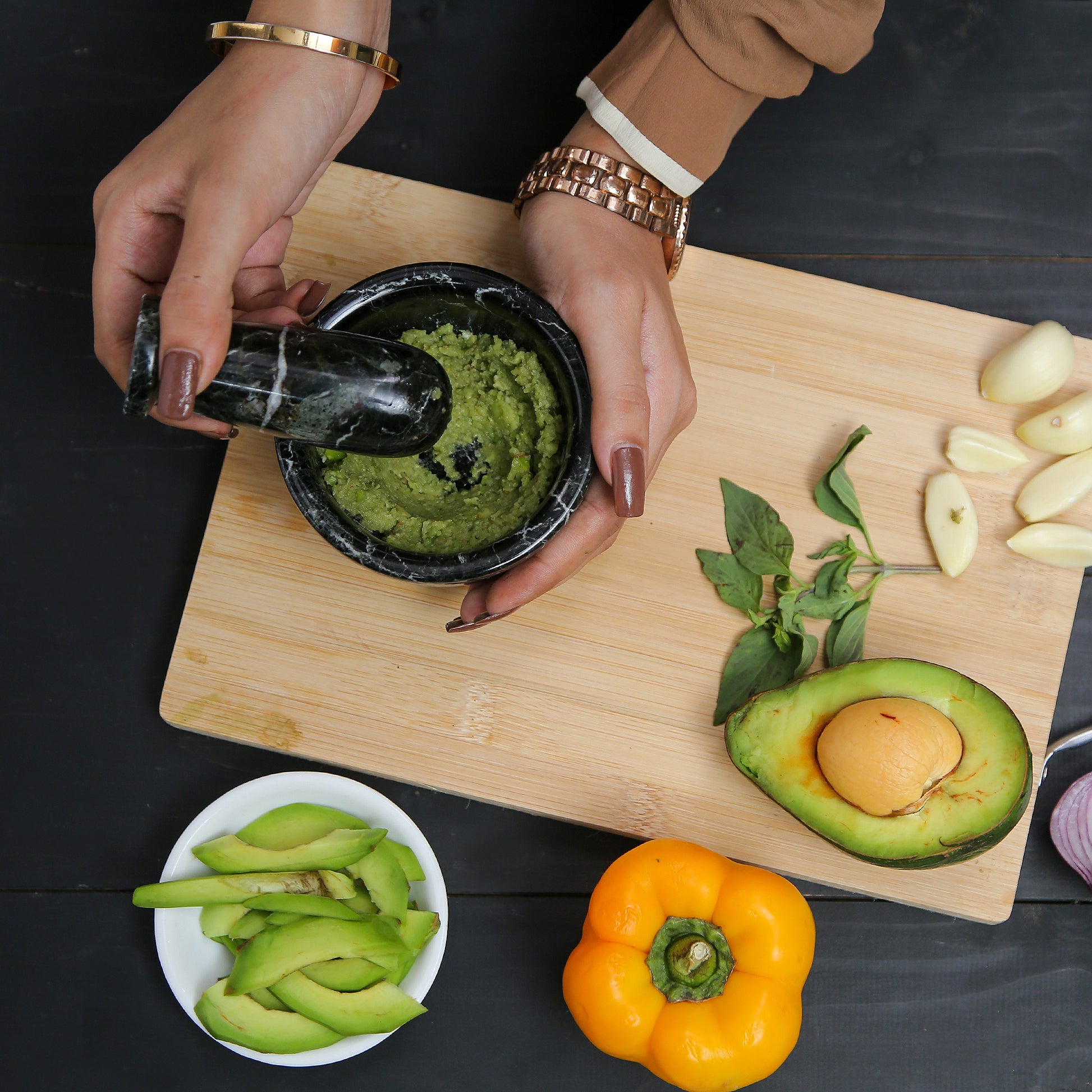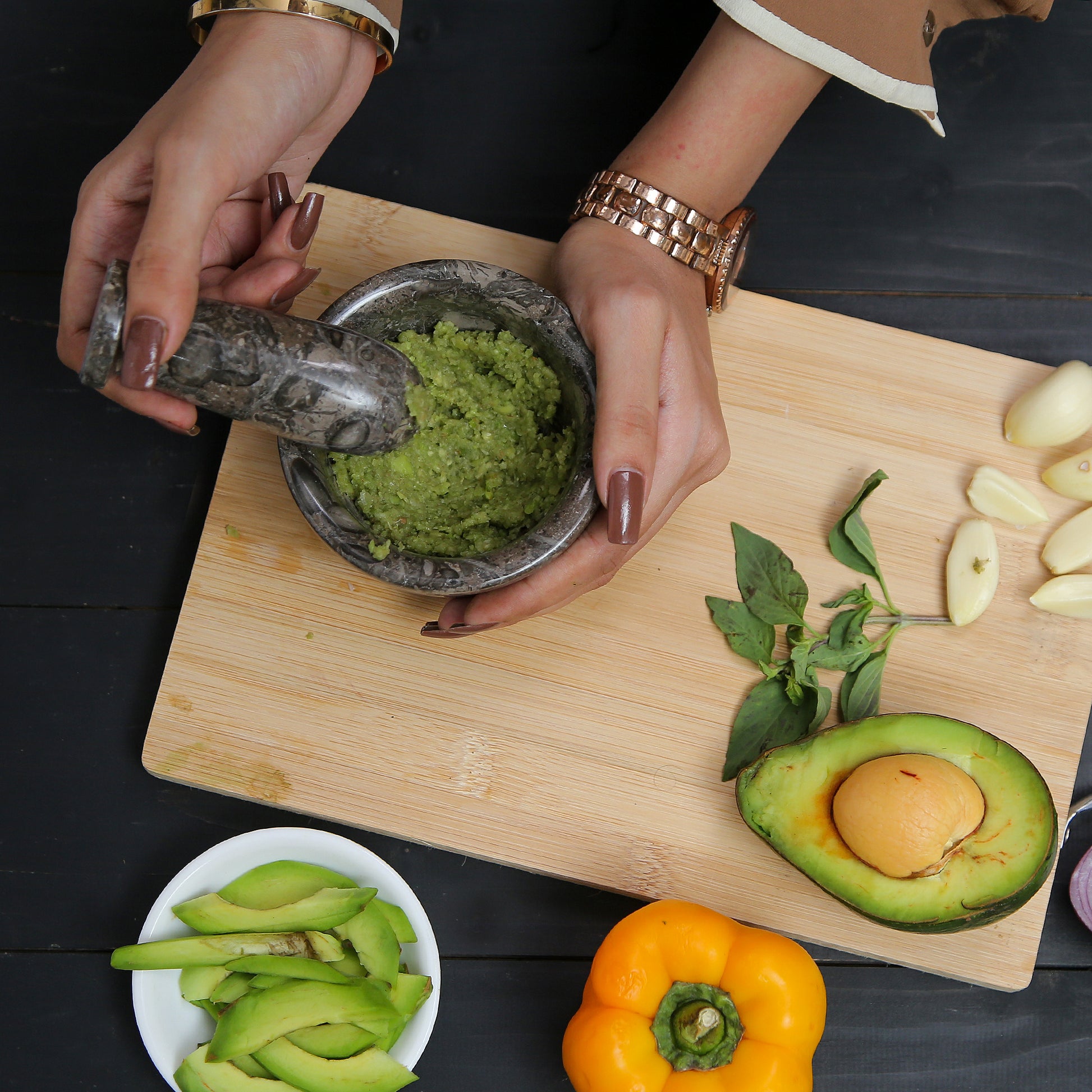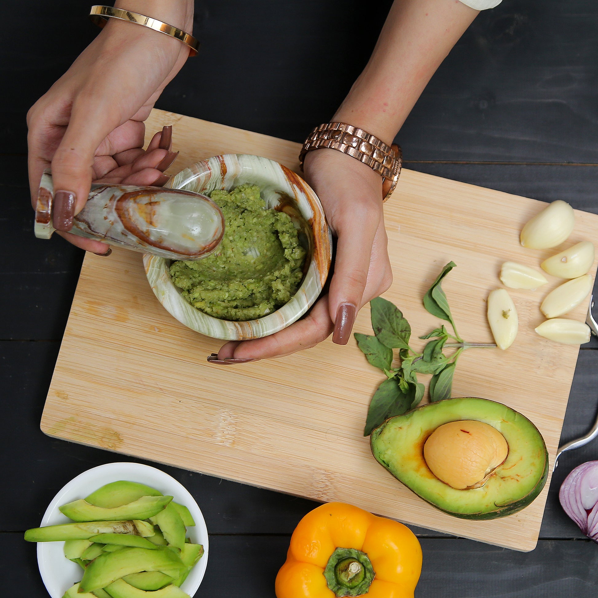 This necessary kitchen tool is ideal for extracting full flavours from spices, herbs, garlic, and nuts, Making Guacamole, Salsa, Pesto, and Crushing Pills, enriching your recipe with fresh, intense aroma. It is also helpful in drawing out the oil from flower petals, seeds, and peels with uttermost ease, providing a natural flavor to your dishes.
