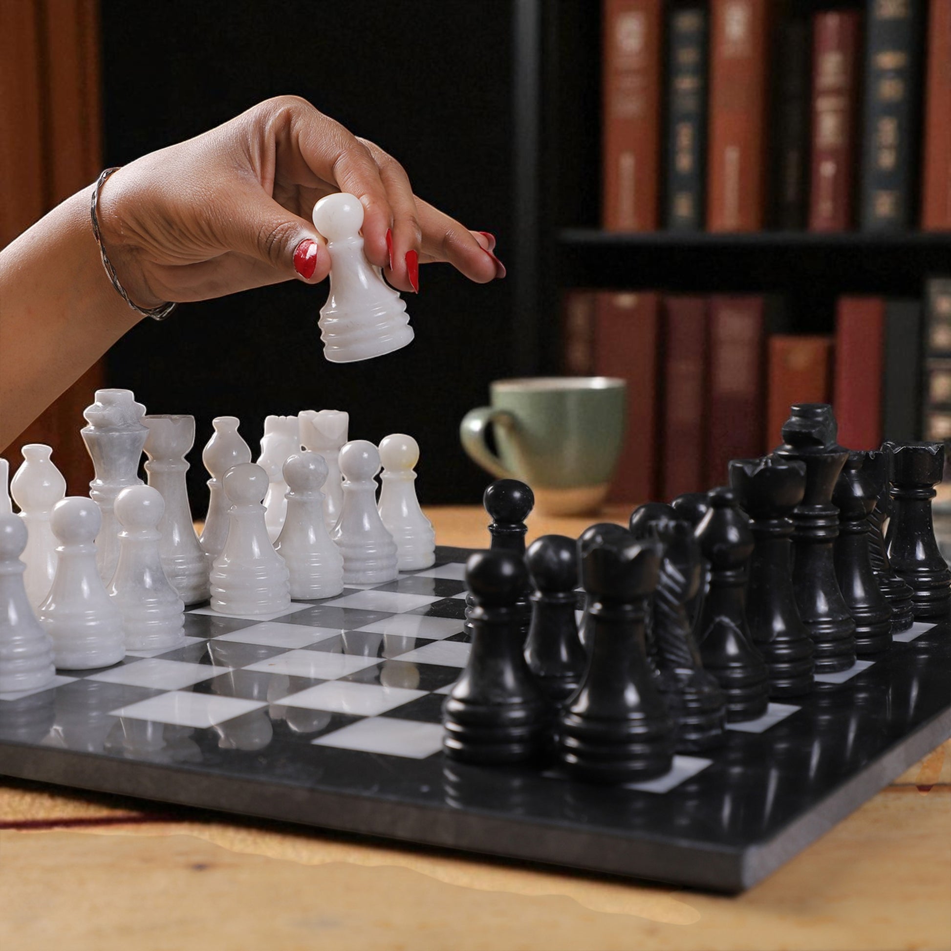Unique & Durable: Natural stone veining ensures every chess piece is one-of-a-kind and long-lasting.