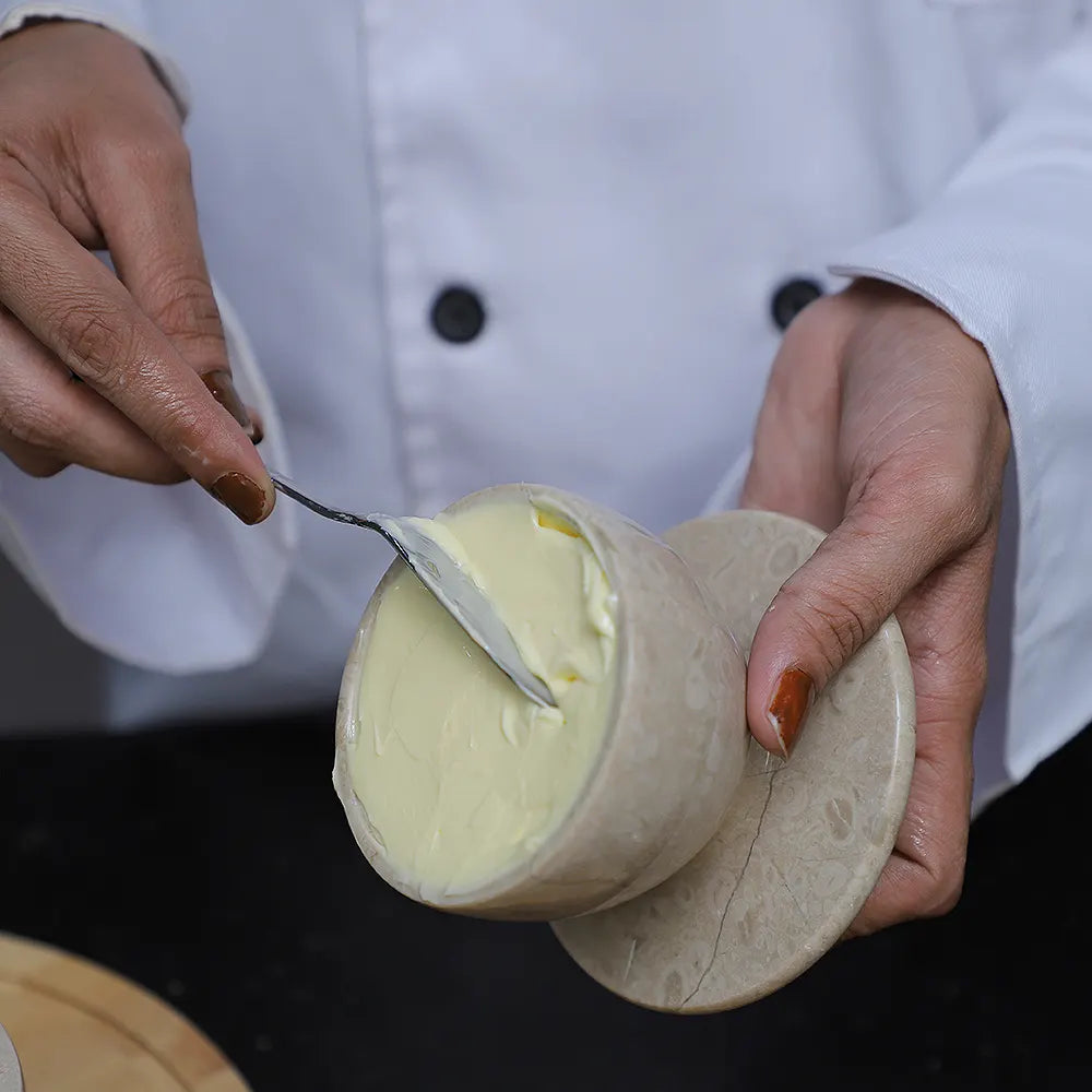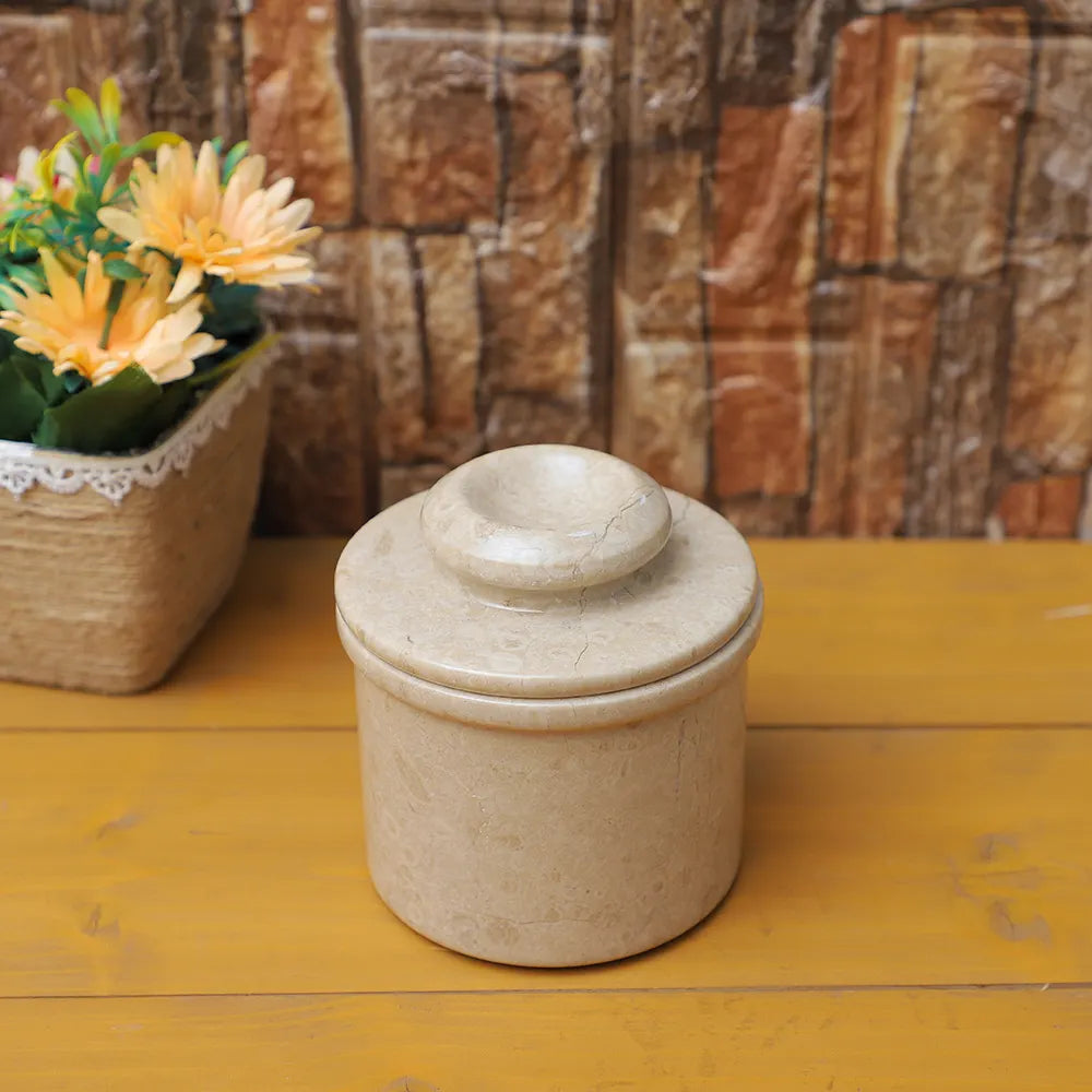 The Marble Hives, Marble Butter Keeper a perfect blend of elegance and functionality for your kitchen. Handcrafted from premium natural marble, this butter keeper not only enhances your countertop aesthetics but also ensures your butter remains fresh and spreadable without refrigeration.