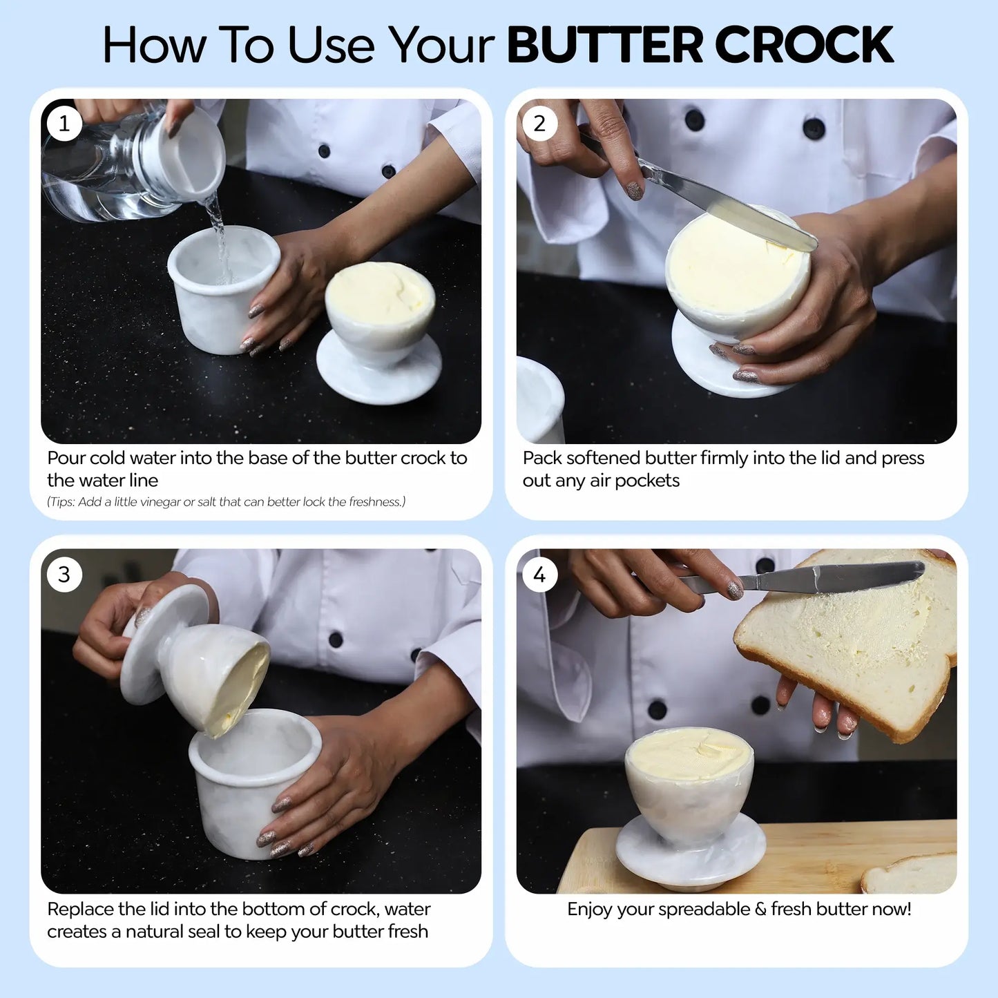 Functional Design: Utilizes a classic French-inspired water-seal method to keep butter fresh at room temperature. Simply pack softened butter into the lid's cup, add cold water to the base, and invert the lid to create an airtight seal.