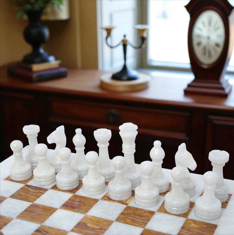 Marble Hives Luxury Handmade Marble Chess Set -White and Brown -10 Inch