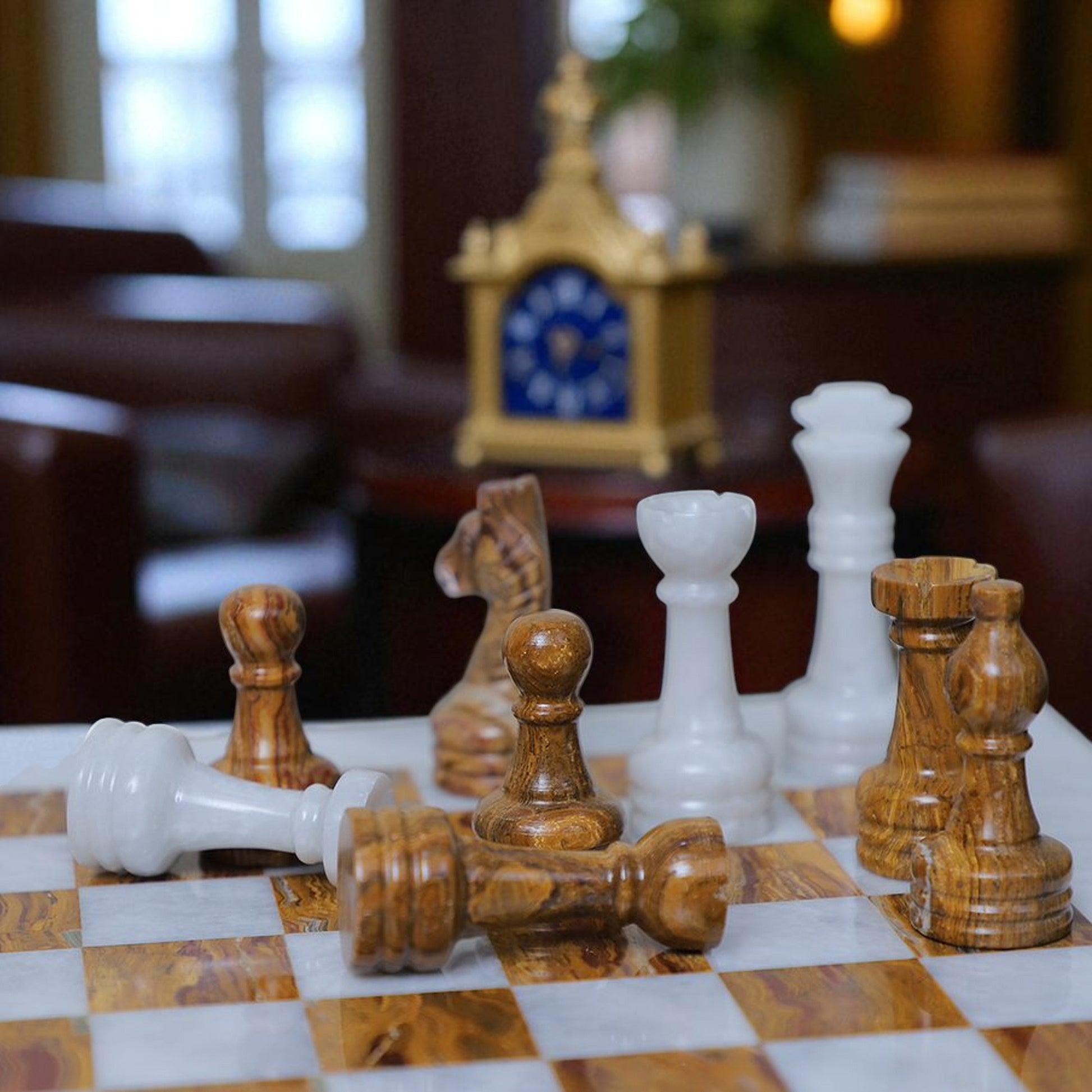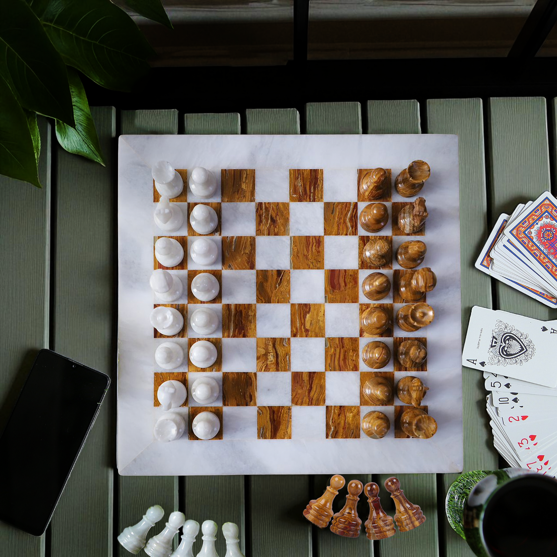 Marble Hives Luxury Handmade Marble Chess Set – White and Brown-15 Inch
