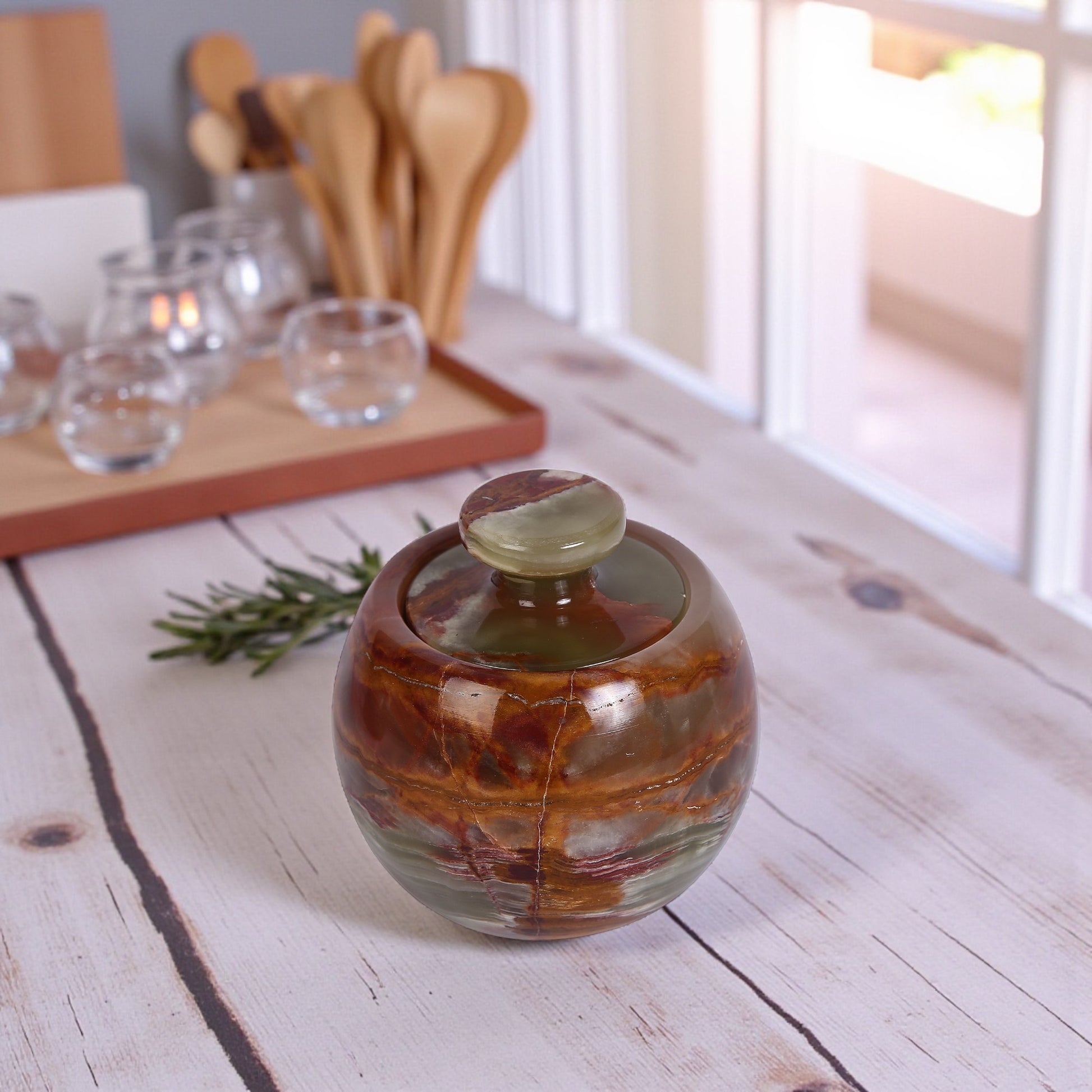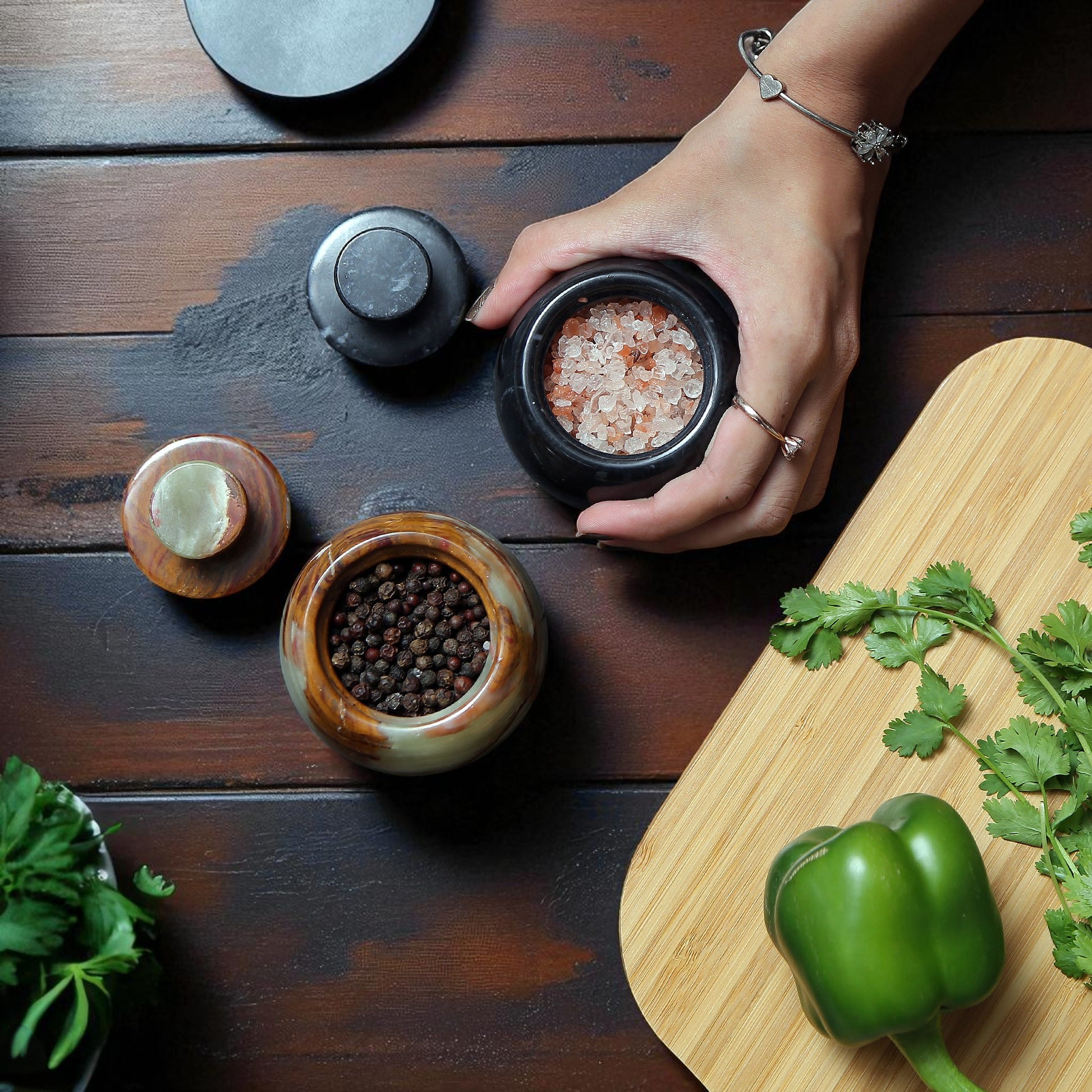 Marble Salt Cellar with Lid- Pack of 2 Black and Onyx