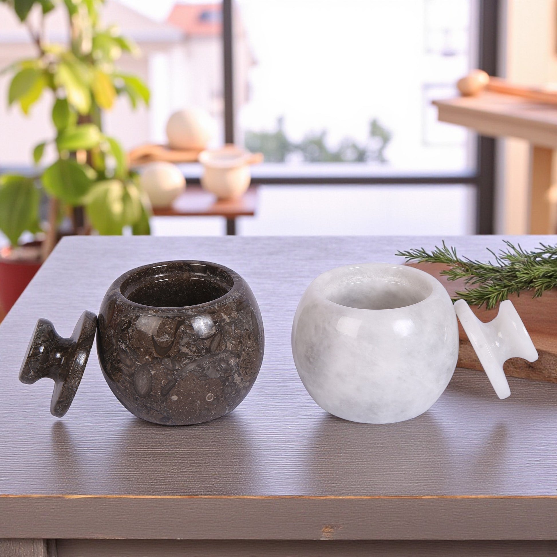 Functional Kitchen Essential: Designed for everyday convenience, these marble salt bowls with lids keep your favorite seasonings, herbs, or spices accessible while elevating your kitchen décor.