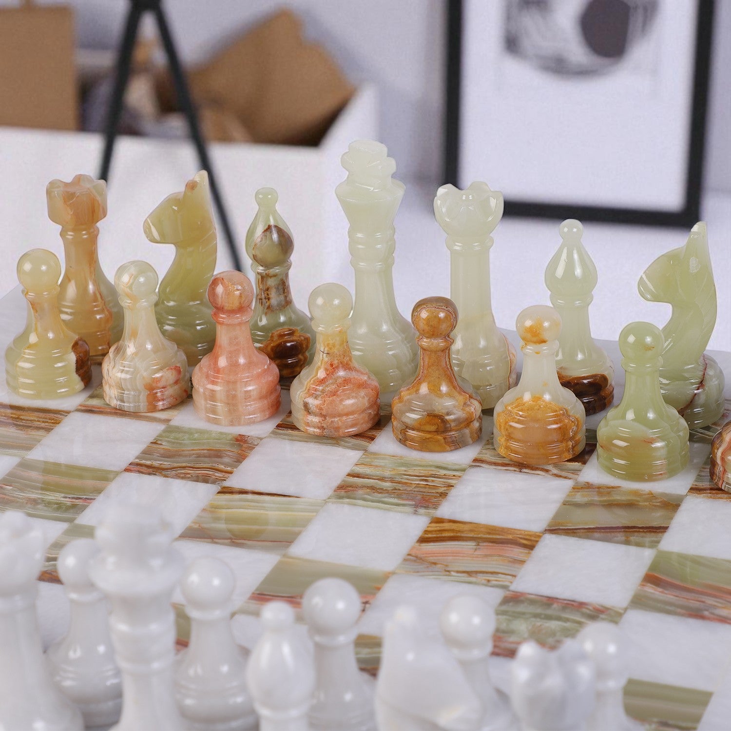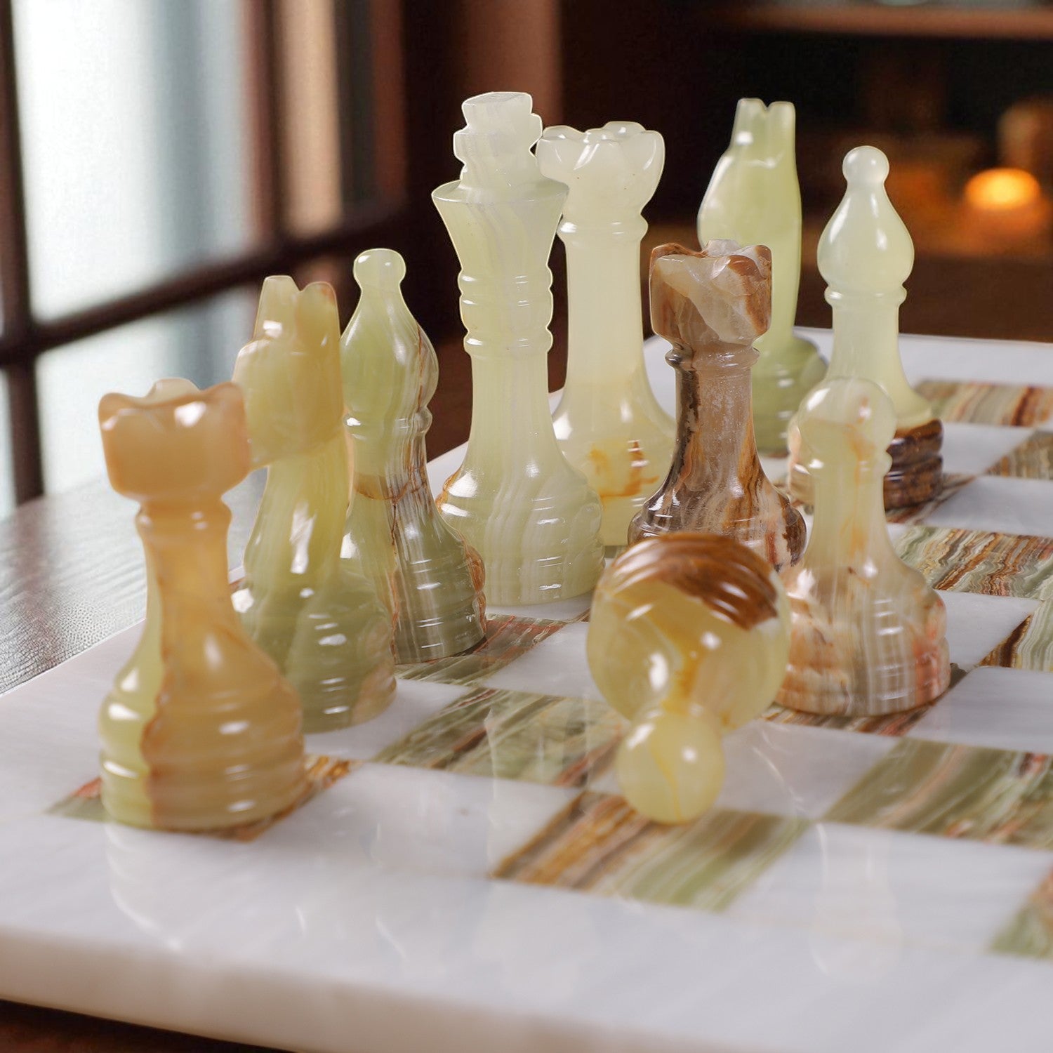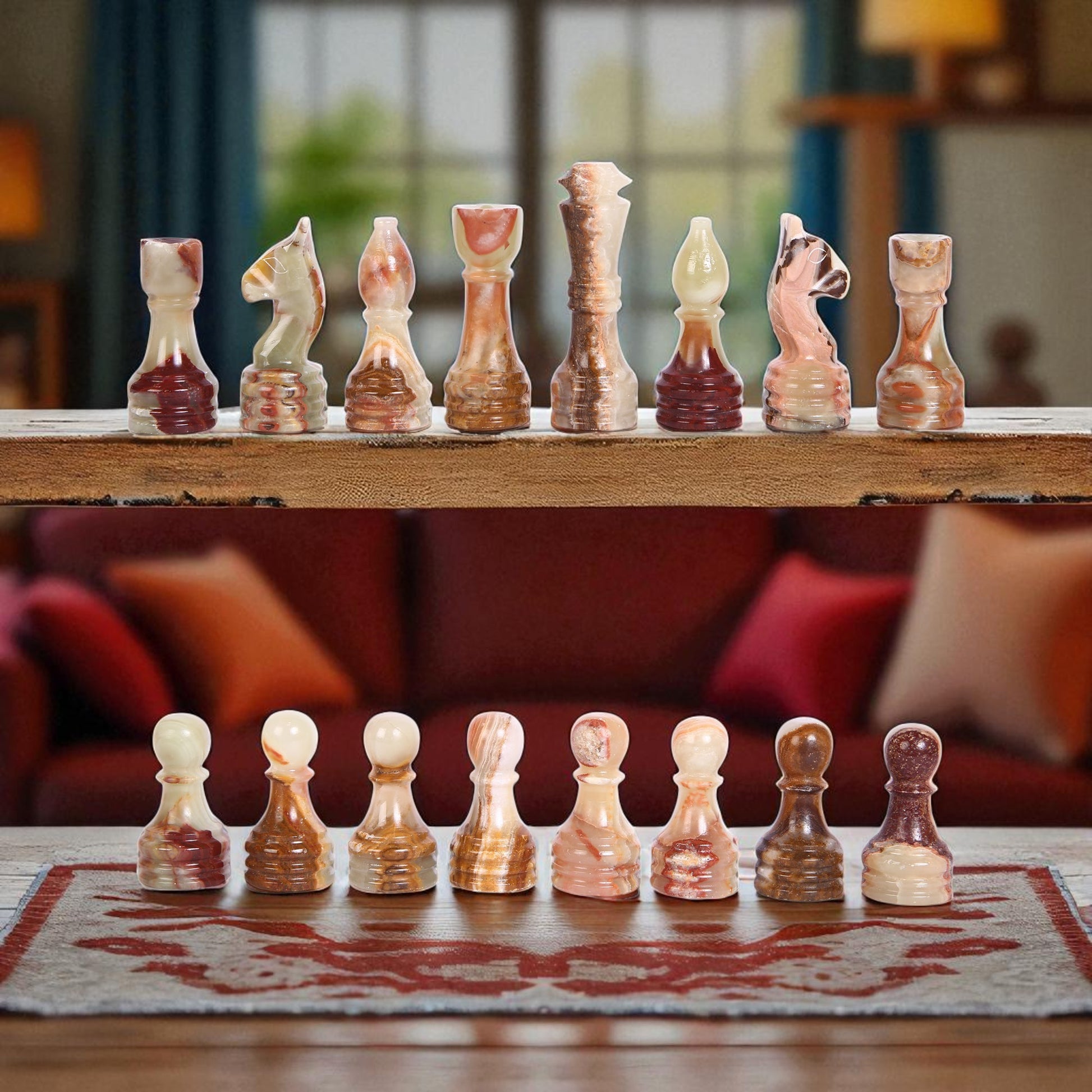 Unique & Durable: Natural stone veining ensures every chess piece is one-of-a-kind and long-lasting.