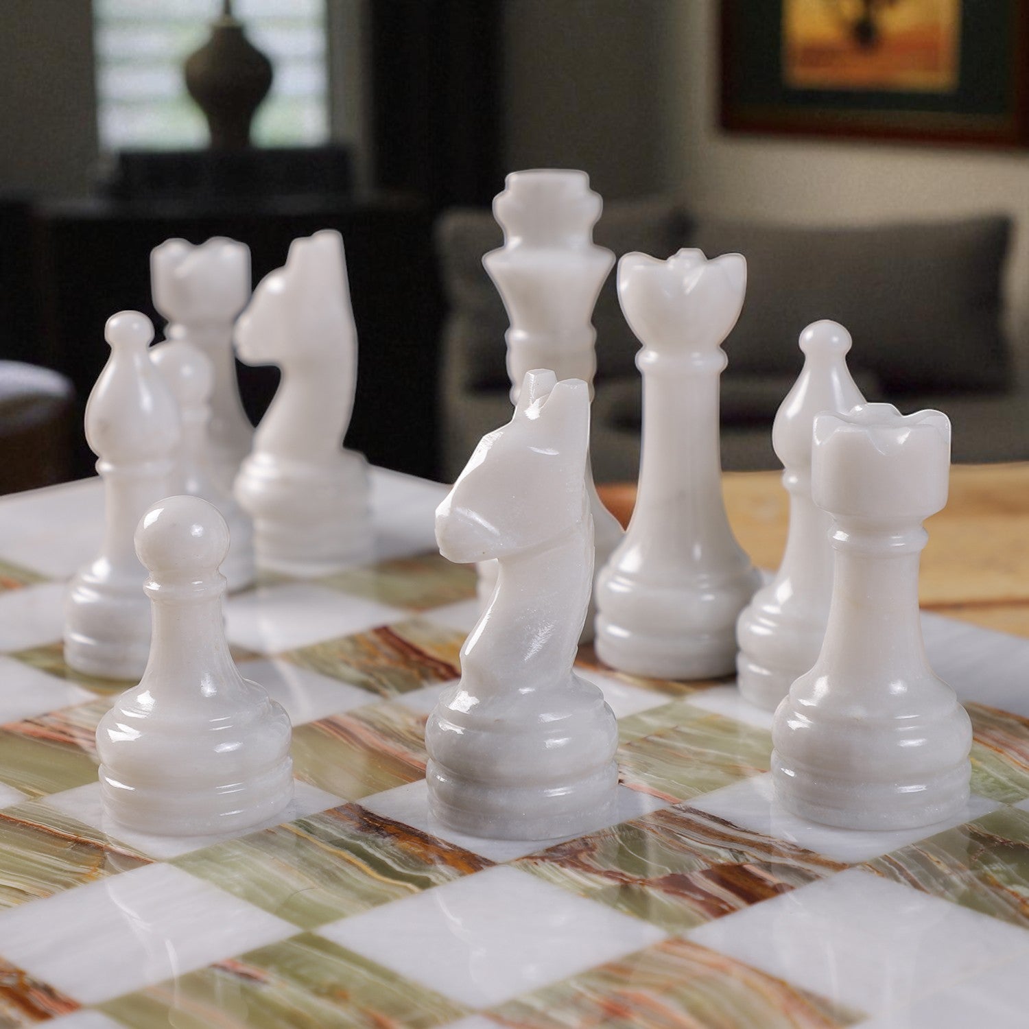 White & Onyx Green Chess Figures